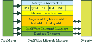 QualiWare Repository´Â °ü°èÇü°ú Open Architecture·Î ½±°Ô È®ÀåÇÒ ¼ö ÀÖµµ·Ï ¼³°èµÇ¾î ÀÖ½À´Ï´Ù. °í°´ÀÇ Çʿ信 µû¶ó ºñÁî´Ï½º¸ðµ¨(¸ÞŸ¸ðµ¨)À» ¼³°èÇÏ¿© °³¹ß ÇÒ ¼ö ÀÖÀ¸¸ç, ÀÌ·¯ÇÑ ¿ÀÇ ¾ÆÅ°ÅØÃ³´Â ÇöÁ¸ÇÏ´Â ºñÁî´Ï½º µµÅ¥¸àÅ×À̼ÇÀÇ ÀúÀå¼Ò¿Í ¿¬°èÇÒ ¼ö ÀÖ½À´Ï´Ù. ¶ÇÇÑ, QLM ¸ðµ¨¸µ ¼Ö·ç¼Ç¿¡ ÀÇÇØ Áö¿øµÇ´Â ¾î¶°ÇÑ ÅÛÇÁ¸´°ú ¿ÀºêÁ§Æ®ÀÇ ÀúÀå¼Ò¸¦ Áö¿øÇϱâ À§ÇØ ¼³°èµÇ°í ¿ÀǾÆÅ°ÅØÃ³·Î ±¸¼ºµÇ¾î ÀÖ½À´Ï´Ù. QLM Çٽɱâ´ÉÀÎ Ä¿³Î¿¡ Æ÷ÇÔµÇ¾î °ø±ÞµË´Ï´Ù.